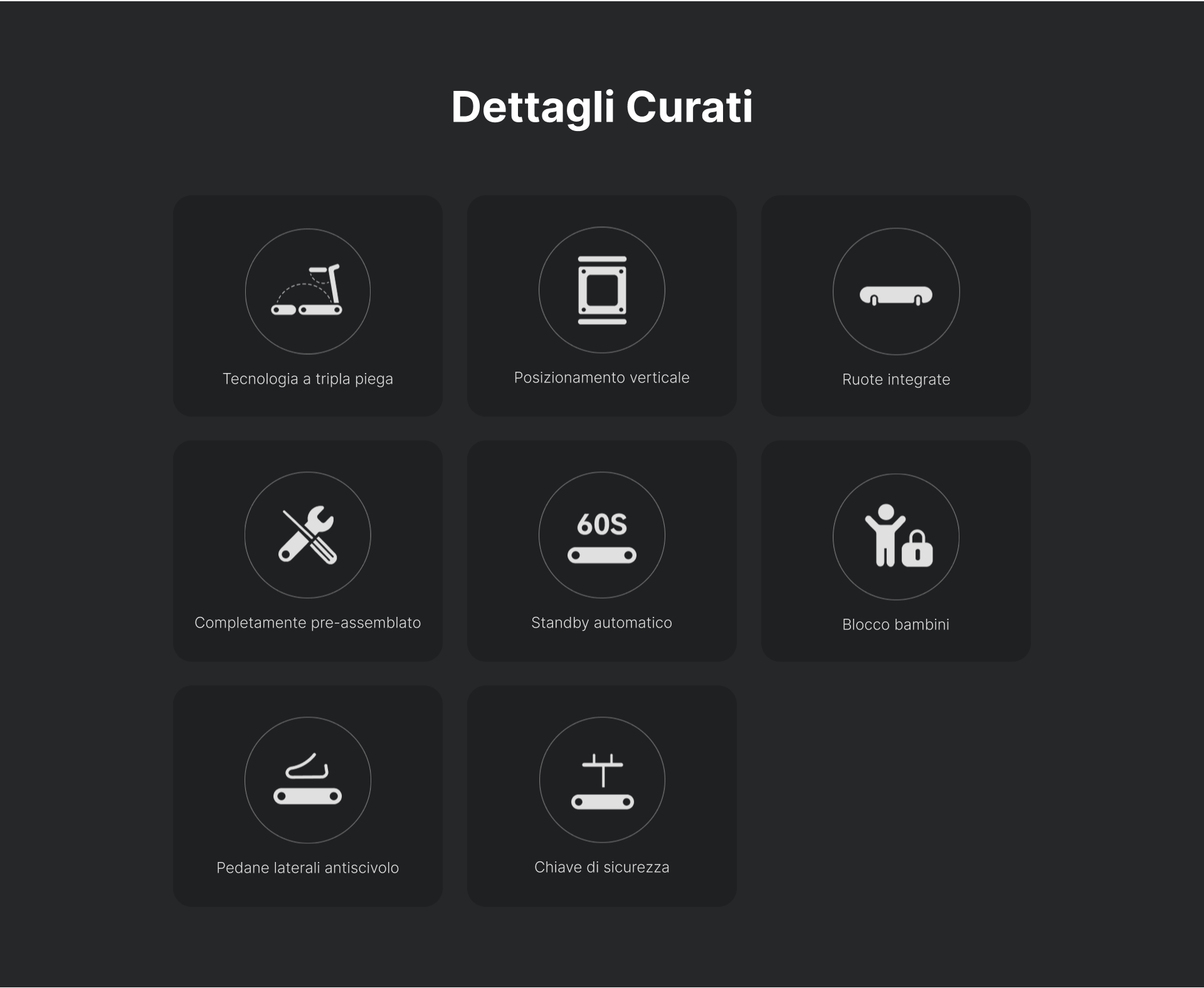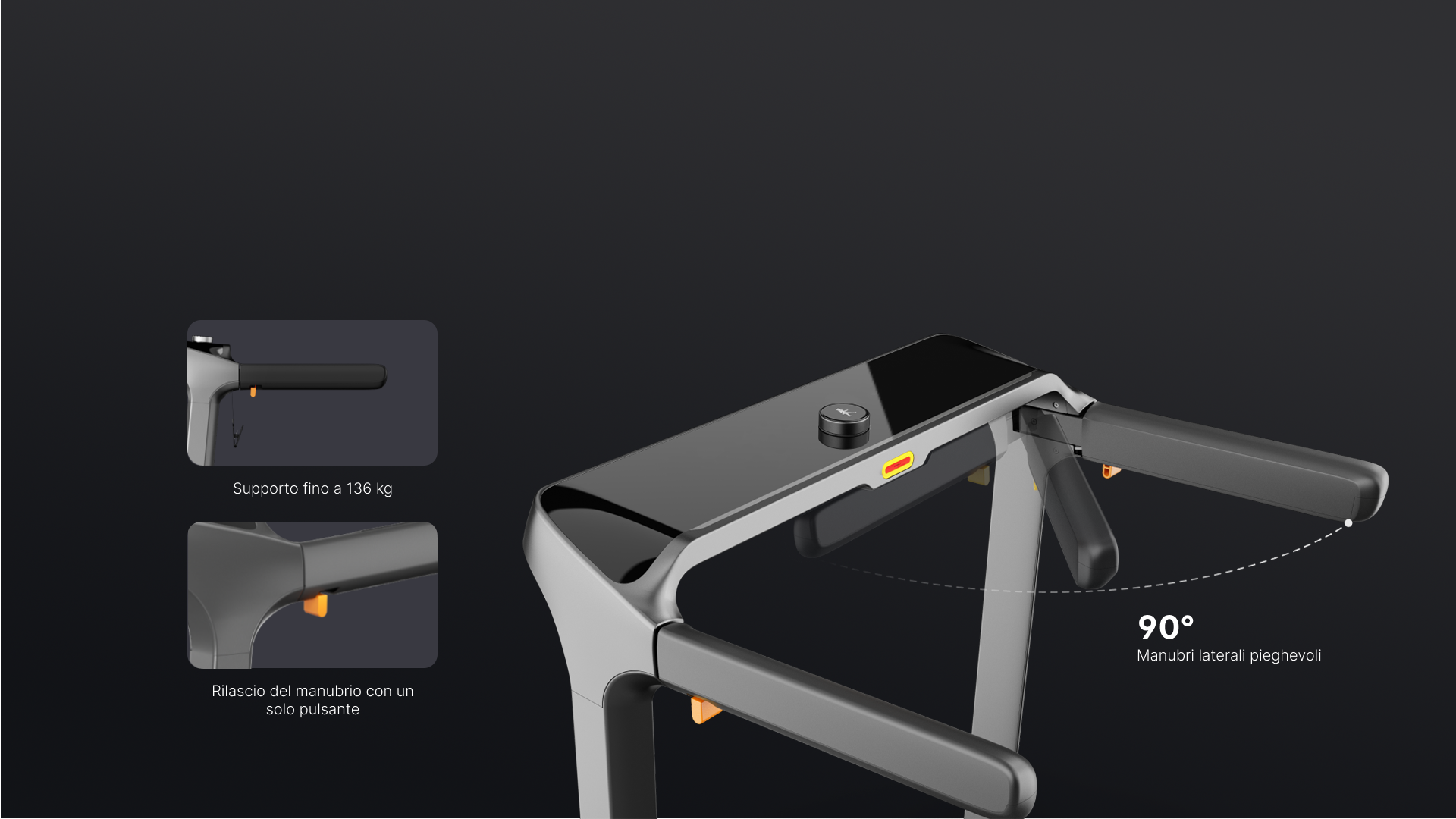 La velocità può essere regolata fino a 18 km/h. Altri vantaggi includono una rampe di supporto stabile, protezione contro sovraccarichi e app compatibile iOS e Android. Disponibile in colore grigio siderale.