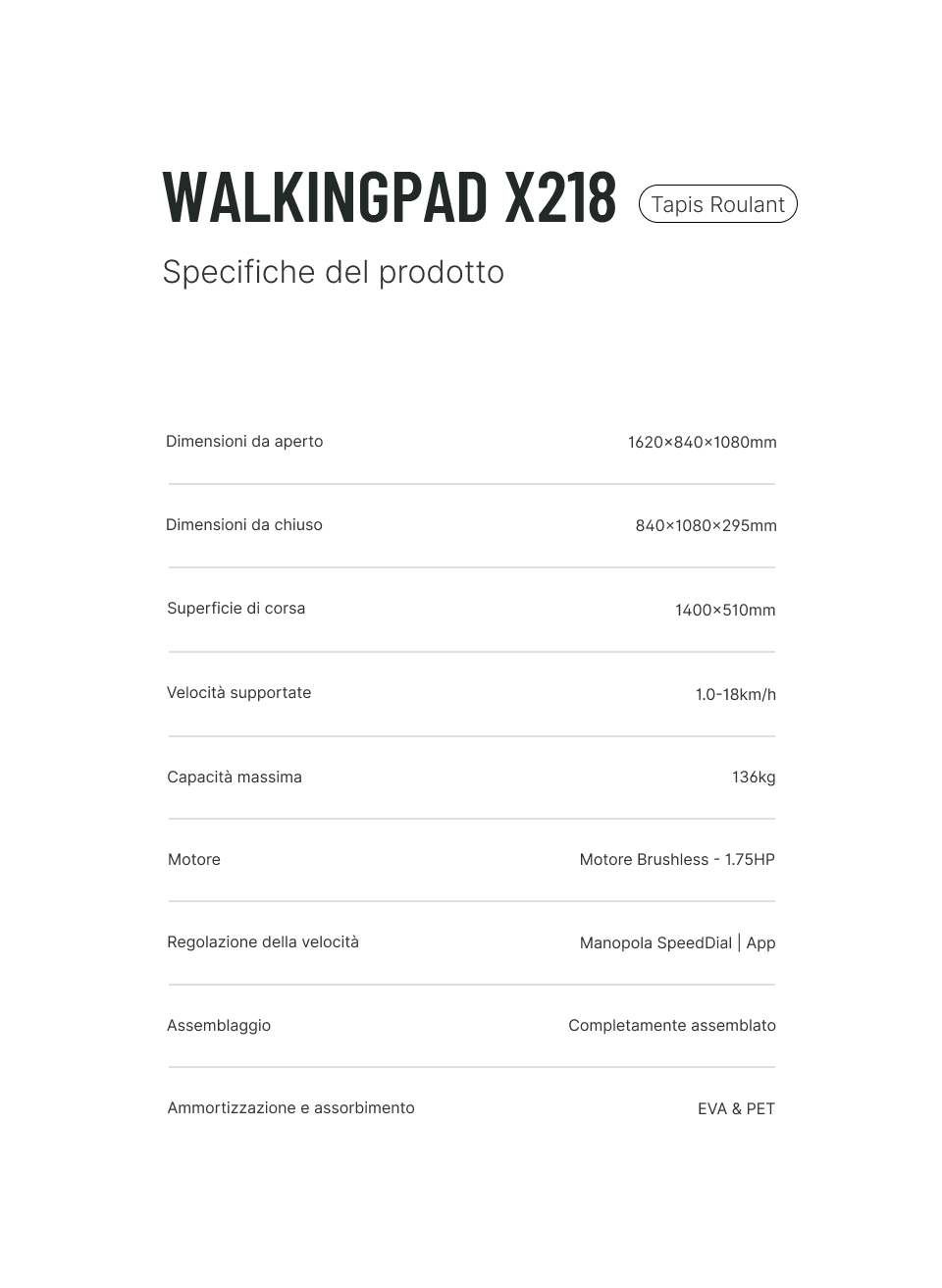 WalkingPad X218 | Tapis Roulant pieghevole